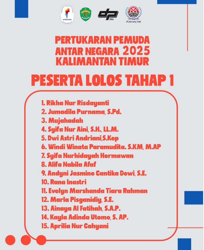 AspirasiNews.id, Samarinda- Dinas Pemuda dan Olahraga (Dispora) Kalimantan Timur (Kaltim) telah mengumumkan 15 nama peserta yang lolos tahap I, untuk mengikuti seleksi tingkat provinsi dari puluhan pendaftar dalam program Pertukaran Pemuda Antar Negara (PPAN) ke Singapura. Yaitu agenda Singapore-Indonesia Youth Leader Exchange Programe (SIYLEP) 2025, yang digagas oleh Kementrian pemuda dan Olahraga (Kemenpora)-RI. Ke-15 nama ini merupakan penyaringan dari puluhan, bahkan ratusan pendaftar yang memenuhi syarat administrasi berkas. Setelah dilakukan verifikasi dan validasi data, oleh panitia pelaksana (Penpel) PPAN SIYLEP 2025 Dispora Kaltim selama proses pendaftaran periode April hingga 11 Mei kemarin.
