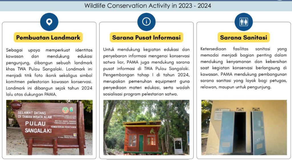 “Kami dari Pama sebagai perusahaan besar, sudah sepatutnya untuk berkontribusi dalam kelestarian alam dan satwa liar di Bumi ini. Sesuai tema, dukung keberlangsungan satwa liar yang ramah lingkungan. Jadi kami bekerja sama dengan BKSDA Kaltim, untuk peningkatan fasilitas perlindungan Penyu di Pulau Sangalaki. Dengan perbaikan tempat penetasan telur atau hatchery, kolam penangkaran, hingga pos jaga tim BKSDA,” urai Maidi.