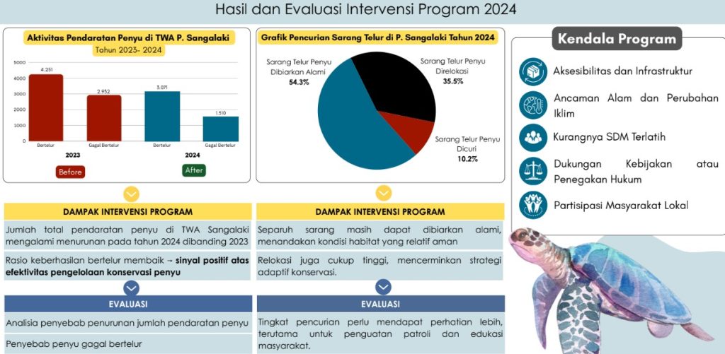 “Alhamdulilah saat ini penjarahan telur oleh hewan predator liar seperti biawak, tikus, elang dan pencurian oleh manusia turun drastis. Dengan begitu perkembangbiakan Penyu Hijau diharapkan dari data bisa terus meningkat. Semoga kerja saama dengan Pama ini bisa terus memberikan dampak positif bagi keberlangsungan Penyu Hijau di Berau Kaltim,” harap Yuliandono.