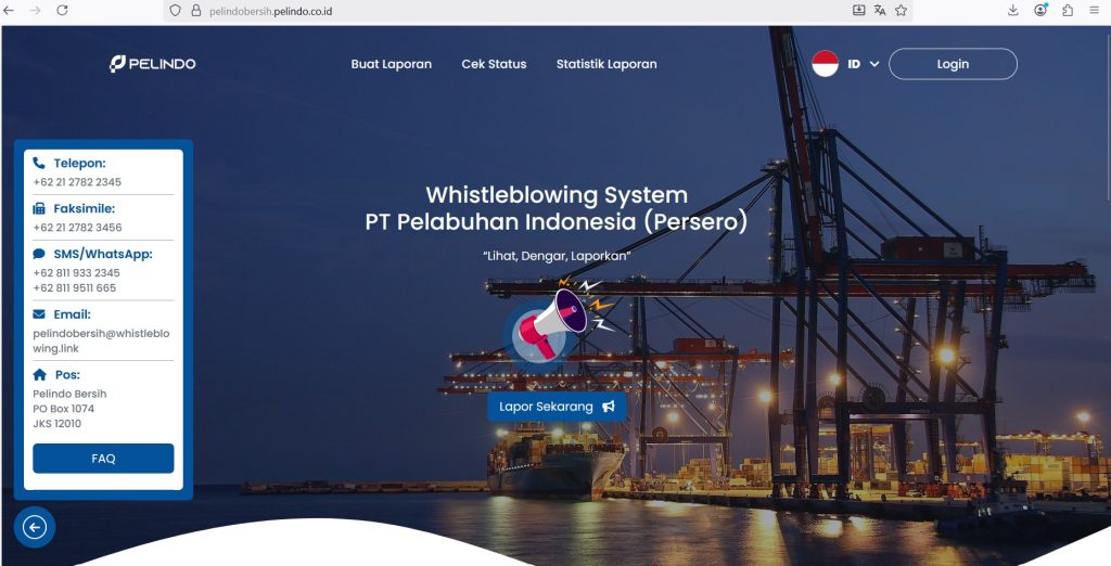 Diuraikan pihaknya, WBS dapat diakses dengan mengirim email ke pelindobersih@whistleblowing.link, melalui SMS ke 0811-933-2345 dan 0811-9511-665, atau langsung ke website https://pelindobersih.pelindo.co.id/. Pada saluran tersebut, telah dilengkapi mekanisme pelaporan pelanggaran yang dapat segera ditindaklanjuti dan dilandasi itikad baik.